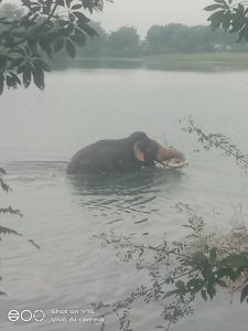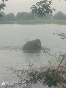 करीब सुबह 7 बजे से हाथी नदी में नहाता और खेलता रहा. इस दौरान राहगीरों और स्थानीय लोगों की भीड़ जुट गई. लोगों ने मोबाइल कैमरे से उसकी तस्वीरें और वीडियो कैद कर लिए, जो तेजी से वायरल हो रहे हैं.