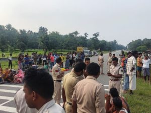 तहसीलदार द्वारा 25 हजार तत्काल सहायता राशि के लिए परिजनों व आक्रोशित लोगों को 3 घंटे सड़क पर प्रदर्शन करना पड़ा. नेशनल हाईवे में चक्काजाम से तीनों सड़कों पर भारी वाहनों की लंबी कतारें लग गई.